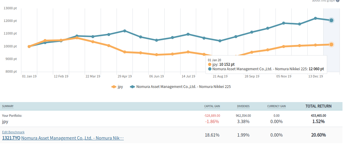日経平均に大きくアンダーパフォームしてますが、まあ日本株は配当しか興味ないのでこんなもんでしょう。